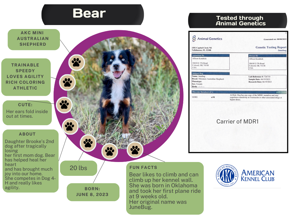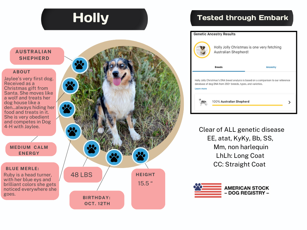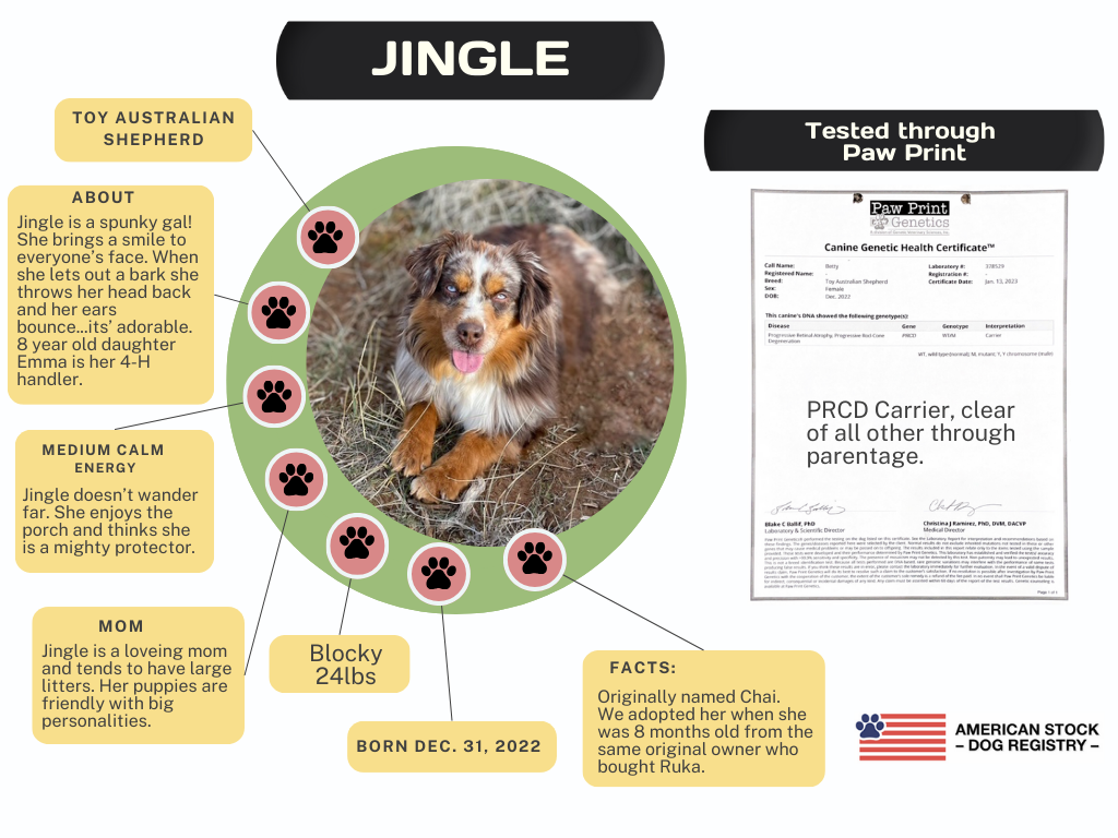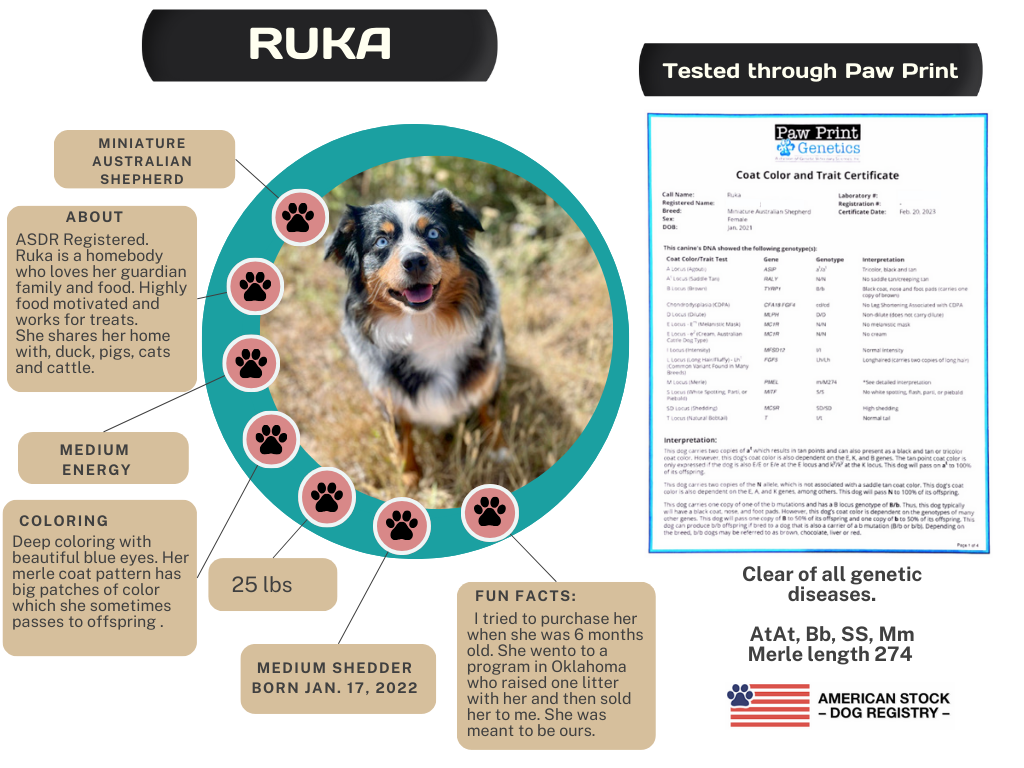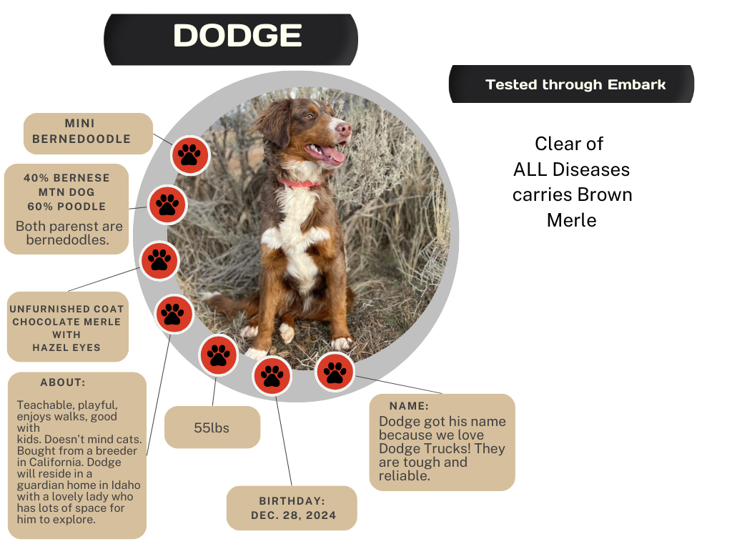 Occasionally we will allow a dog to go to a guardian home where they are raised with another family but get to come to our place to be bred and have babies.